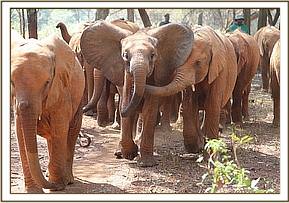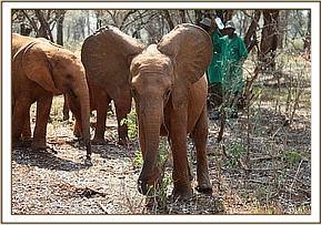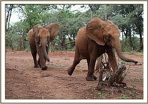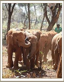 Sagala is an extremely fortunate calf to have been sighted before she made a meal for a pride of lions, or worse still died from starvation. Trevor's fortuitous journey that afternoon saved her life, along with the rapid response of so many who were pivotal in getting her safely to the Trust's Nursery where specialist care was on hand. Sagala is a shy girl, who as of now has not been corrupted by naughty Esampu and her ilk! We are hopeful that being older she will resist the temptation and keep her mild manners.