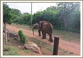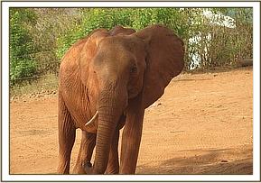 A big wild elephant with one tusk following Seraa