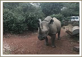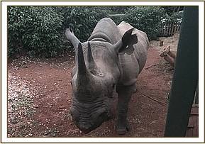Shida who puts himself into his stockade for visiting, but is otherwise a free & wild rhino