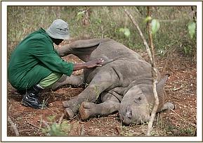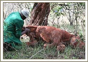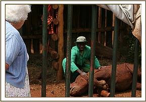 Dame Daphne Sheldrick checks on Solio