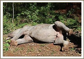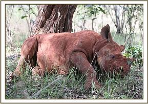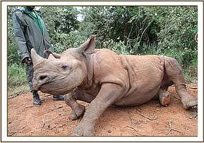 Solio relaxing watched over by a keeper