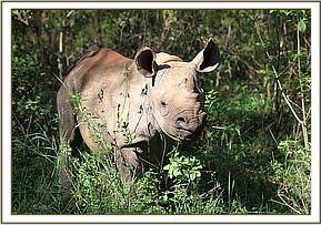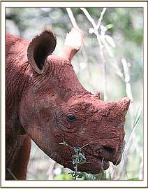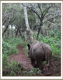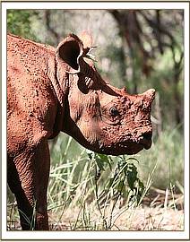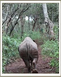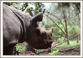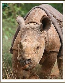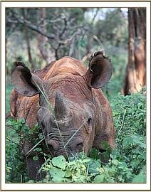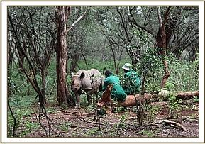 Solio in the bush with her keepers