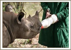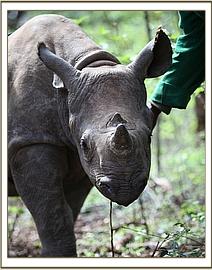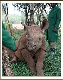 Solio with her keepers
