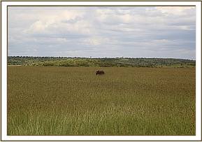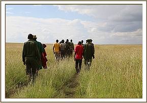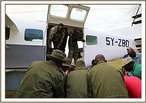The rescue plane was scheduled to depart at 7.30 am but the flight was placed on ‘stand by’ while a search was mobilized to relocate the calf again. A team of scouts patrolled the seas of grass in search of the tiny lone figure, but it was not until 11.30am that they finally caught up with the little fellow. The Olare Orok scouts remained on site observing the calf from a safe distance while the SWT rescue team flew to the closest airstrip.
