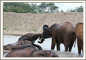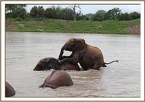 Vuria, left, and Mutara having a good swim