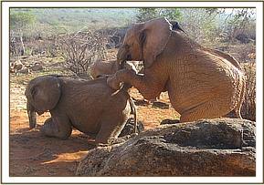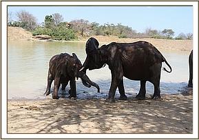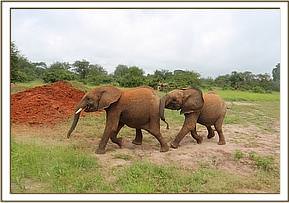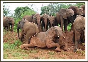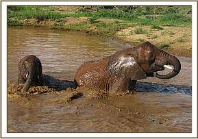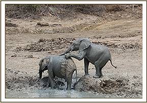 Vuria plays with Bongo in the mud