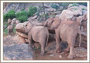 Vuria and Bomani climbing the rocks