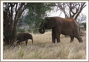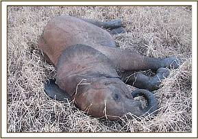 The Mobile Veterinary Unit monitored the baby for some hours during which time she gravitated towards the lone bull who was passing by. However, the bull was obviously un-inclined to become encumbered by an adoptee, because he kept on pushing her gently away, although due to her persistance he decided to remain within reach. This was opportune because just 50 yards away, a pride of lions was taking great interest in events and would have taken an un-protected baby elephant in a flash had she not found him for protection.