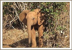 Wasessa peeps out from behind a bush