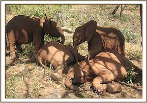 Wasessa leads the orphns in joining a wild group