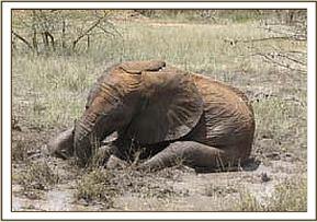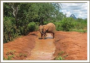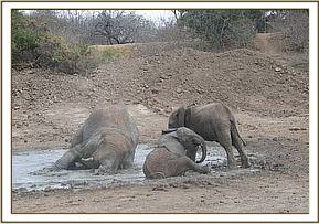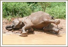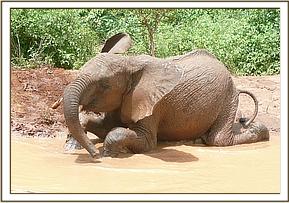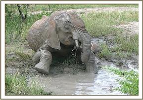 Zurura mud bathing in a puddle