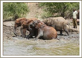 The elephants were fortunate to be able to travel in the cool of the day, but unfortunate in that the deviations on the Mombasa road were grueling, and the Kanziku stretch as they approached Ithumba, even more so. By 1 a.m., however, they had arrived at their destination. The lorries were reversed up against the Unloading Bays - favourite early morning scratching places for the Ithumba elephants before heading out to feed each day. Lenana and Chyulu had traveled well, and emerged calmly to enjoy their milk feed as the second truck carrying Makena was negotiating into position. As soon as its tailgate was opened, they rushed to greet Makena as she was coming out, obviously relieved that she was with them at the other end. However, Makena had taken the strain on the journey, and was clearly confused and disoriented as well as being visibly subdued even refusing to take her milk. The Nairobi Nursery had been her world for the past 3 years, for she had been a baby of just 3 months when she first came in and had now past her third birthday. The fact that her world had been turned upside down had taken an emotional toll on her. Lenana and Chyulu had been older when orphaned, so both could probably remember another wilderness world that was foreign to Makena.