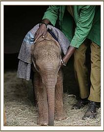 Kungu came in battered and bruised after the ordeal of being extracted from that well in the remote Northern frontier of Kenya. However, he recovered well, and went on to enjoy 5 happy weeks with his little friends in the Nairobi Nursery, under the watchful eye of Lesanju and Lempaute. Baby elephants always suffer teething troubles when their first molars push in through the gum from the back of the jawbone where they are formed, and from whence they will be replaced by ever larger molars another five times throughout an elephant lifetime to cater for an ever increasing appetite as the elephant grows in body size. Those first baby molars are the front-runners to all the others and as such very often trigger fevers and diarrheoa which in turn creates an ideal nursery for bacteria if a little elephant’s immune system is not strong enough to cope when it has been deprived of his mother’s perfect milk and the special ingredients it contains to counter such problems. Some infants who have been blessed with a healthy and strong immune systems come through unscathed, (usually, however, not without help from alternative medication and often the oral Sulphadimidine) but there are others who have not, and sadly “Kungu” is now numbered amongst those. He had a bad start - the loss of his elephant mother and family – the ordeal of being stuck in a well and extracted with great difficulty which left him injured and bruised under his chin and an infection high up in his trunk, but he battled through that – then followed by teething – which simply proved too much for him. Now, one more tiny grave in the forest behind the Orphans’ Nursery Stockades holds him in his last deep sleep, a peaceful spot worthy of his earthly remains. He was blessed with a more peaceful end than he would otherwise have endured, surrounded by an out-pouring of care and love, and laid to rest with the tears of those who loved him, both here in the Nursery, and in distant lands, where many people had come to know of his story and who have supported him.