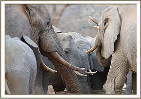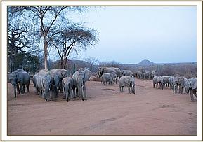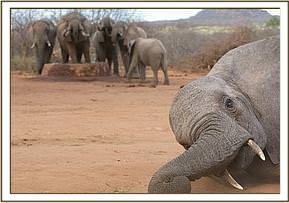 Today, especially during the dry season when the natural water pans have dried out, the Stockade water trough is a magnet, and seldom without Big Wild Bulls, who have given the nod to the cow herds who are beginning to venture in with their babies during day light hours. It is not uncommon now to find over thirty wild elephants comfortably intermingling with our Orphans at the stockade water, totally at ease with the Keepers and foster parents visiting the unit.