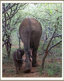 Mulika and Yatta were mated by the same wild Bull within days of one another early in 2009, something that was witnessed by the Ithumba Keepers not far from the Stockades, so we have known for a long time that they might well have fallen pregnant. This became evident when their breasts became more enlarged some 6 months later, and began to fill more recently. As Daphne was looking at Yatta, the Keepers pointed out her full breasts, but Daphne did not expect to actually be at hand when Mulika brought her wild-born first baby back to show the Keepers at the mudbath. It was a baby girl, and Benjamin chose the name – a Kamba word for “the Loved One’ – Mwende (Pronounced Mwerndeh). To actually be there was, indeed, a heart-warming event which made the 13 years involved in rearing this orphan so very worthwhile, granting her a second chance of life, which would otherwise have been denied her. All the foster-parents who have helped financially with her support can also be justifiably very, very proud as are the Keepers who are, literally, Over The Moon!