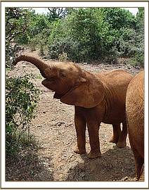 The convoy arrived at Ithumba by 1 p.m., all the elephants having travelled well, but for the tear in Sunyei’s ear, which was not serious. Whilst the newcomers awaited the arrival of the Ithumba ten, the Vet attended to Sunyei’s torn ear, but then the surrounding bushes exploded, and out came the Ithumba ten, led by Wendi! They arrived unexpectedly and in a rush which unnerved the new arrivals somewhat. Trumpeting, bellowing and rushing around dominated this reunion, which intimidated the Nursery group, especially Ndomot and Galana, who took to their heels. Hot on their heels were the older elephants, namely Yatta, Mulika, Kinna and Nasalot, who were every bit as exuberant in their welcome and probably the largest elephants some of the newcomers could ever remember seeing! Taita immediately homed in on Sunyei and had to be restrained a little, to allow the Nursery elephants some space. But by that evening, they had all settled in, and Ndomot was overjoyed to find himself reunited with the little mother he thought he had lost – namely “Wendi”.