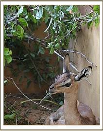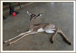 The prison staff were quite unsure what to do with this strange new arrival, so whilst they decided the best course of action they kept the orphaned gerenuk in one of their livestock stables which the lonely little gerenuk had followed the goats into. The goats were obviously rather confused at this new addition to their family but soon became used to the baby gerenuk, treating him just like another goat until you could barely notice him huddled amongst the rest of the herd. After two days of living like a goat the staff had finally managed to make contact with the DSWT rangers in Tsavo and reported the story of this remarkable little antelope.