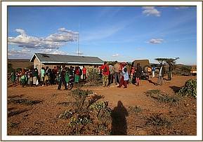 While in close communications with KWS who were trying to instill calm to a difficult situation the DSWT rescue team were sent from Nairobi departing at 3.00pm from Wilson airport. After a one hour flight they arrived on the Ol Lentille airstrip and were immediately collected by a KWS land cruiser and taken to a nearby village where the calf was.
