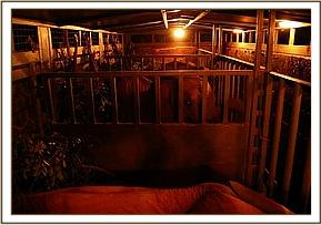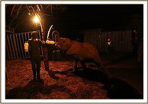 The move was again planned for the 4th of December when the three girls were woken at 3 a.m, given a tranquilizer injection to take the edge off the experience and loaded again, Rorogoi going into the truck first without a problem. However, when Arruba and Mashariki saw the night time scenario set up again, with masses of Keepers milling around, and lights strung in the trees, they instantly knew that something was up, and flatly refused to be loaded, even sitting on their haunches in defiance. A strap was placed around their forelegs and together with a bottle of milk for further temptation; they were muscled into the truck. Once within they appeared resigned, taking their milk bottles with great enthusiasm and remaining silent and calm, so this time the “elephant convoy” left at around 4.30 a.m. having been slightly delayed.