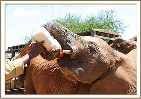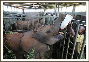 At 5pm, when it was time to return to the stockades, Arruba, Rorogoi and Mashariki were led back first for their milk and having gulped down their bottles, they returned to the waterhole to again cool themselves and by the time the others came in, the new arrivals were clearly distinguishable being the wettest orphans in the herd. Rorogoi, overcame her shyness, and was soon back to her old tricks; reaching through the wire fence to try and sneak an extra milk bottle and even trying to push Panda away in order to try and usurp her share.