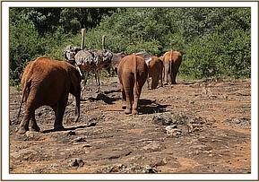 Each day the orphaned elephants and the 2 ostriches were taken on long walks down to the open plains of Nairobi National Park and sometimes they had the opportunity to mix with the wild ostriches of Nairobi Park, and must opportunely, one day, Pod never returned as usual with the herd. The elephants and Pea returned without him, and we can only assume that Pod joined the wild ostriches, since there was no evidence to suggest otherwise.
